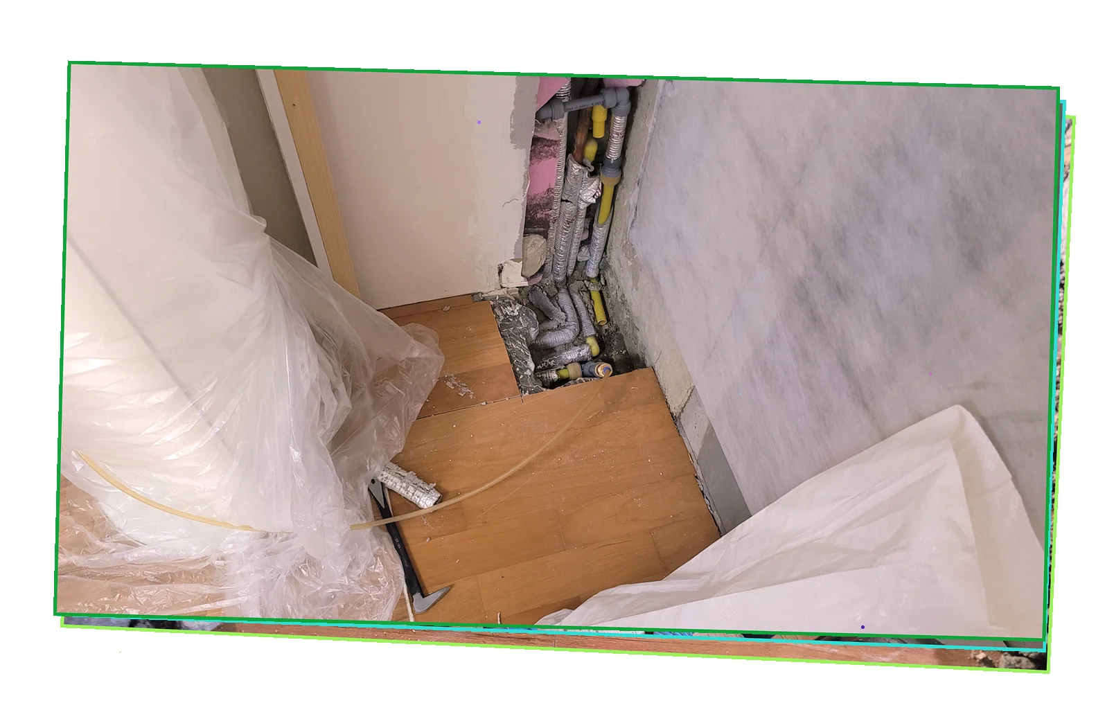 파손 구간을 정확히 절제하고 신규 자재로 교환했습니다.